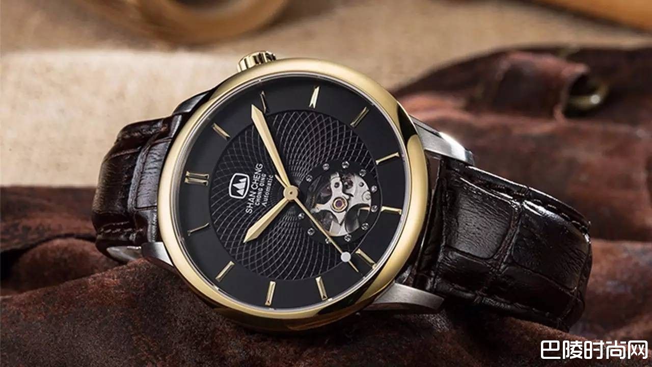 这款腕表使用瑞士进口自动机械机芯,鱼鳞纹网状的黑色表盘上,以11颗不锈钢钉固定镂空窗口,12点下山峰标志正是山城重庆的模样,表壳与表扣使用的是不锈钢镀金,搭配咖啡色真皮表带,复古主义与现代审美相结合,非常适合送给30至50岁,或具有国表情怀的男士。