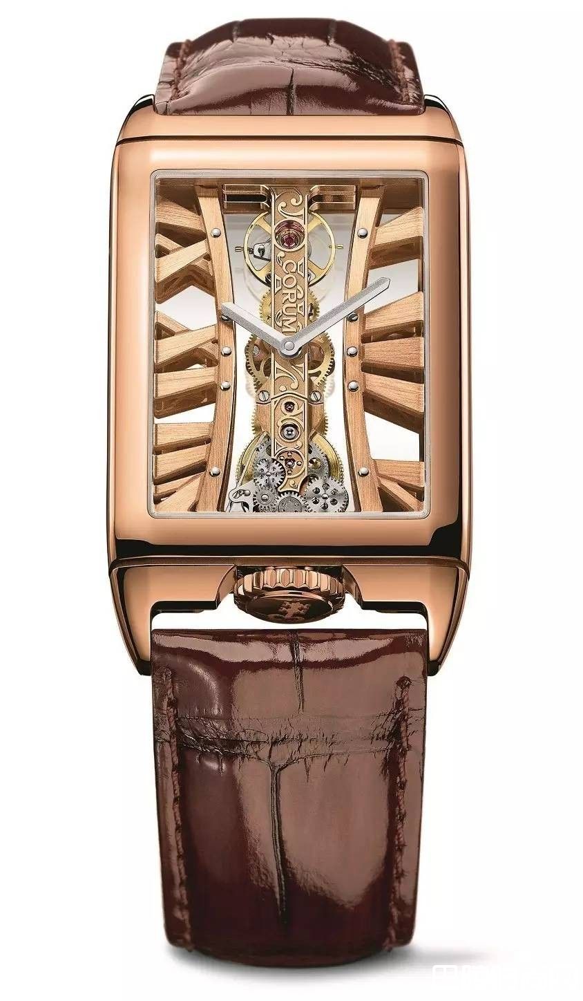 上下两块窄小夹板像一根线一样,串起整个机芯结构,很有冲击感的视觉效果,让人过目不忘。