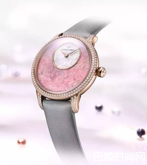 雅克德罗今年推出一款全新陀飞轮女表,珍珠母贝表盘,陀飞轮大秒针,39毫米红金表壳,镶钻表圈,白色织缎表带,上手非常好看。