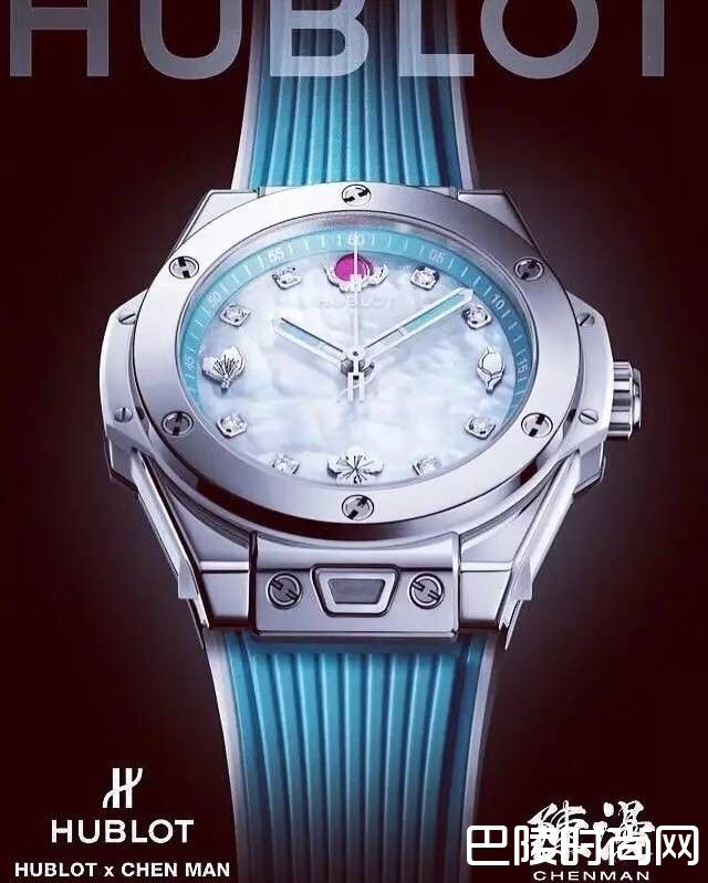 这款宇舶×陈漫腕表,主打淡蓝色调,珍珠母贝表盘,淡蓝色分标圈和橡胶表带,表背是陈漫书写“金知玉时”,漫迷们可以考虑偶像的作品。