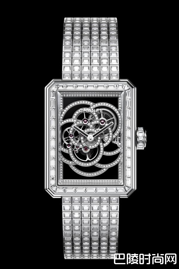 2017年,恰好时值PREMIèRE系列腕表推出30周年,CHANEL在高级制表领域再添臻品,呈献全新PREMIèRE山茶花镂空腕表。此款腕表配备香奈儿第二款自制机芯Calibre 2,几何镂空的构造惟妙惟肖地雕刻出山茶花的灵动优雅。深黑色的镂空机芯镶嵌了甄选宝石,独一无二、匠心独具,诠释了品牌的又一经典元素。值得一提的是,Calibre 2机芯由巴黎芳登广场的创意工作室提出最初设想,再由香奈儿位于瑞士的腕表工厂Chatelain构思、研发、调配和组装而成。它别具匠心的理念和设计彰显了品牌对无限创意的不懈追求。