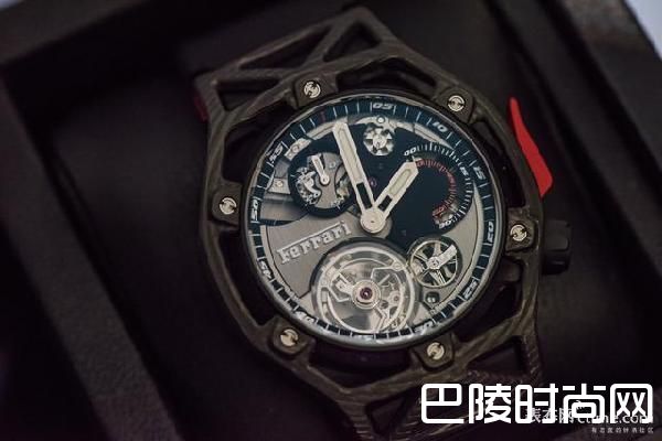 这块腕表属于2017年Baselworld宇舶发布的新系列,由法拉利在马拉内罗的设计团队进行设计,再由宇舶所制作出品的法拉利70周年纪念款。可能由于它是法拉利设计团队主导的设计,所以在这块表上,我看不到生拼硬凑的感觉,整块表在视觉上非常完整合一,一个一个元素都相辅相成,既为腕表功能而存在,又同时彰显着自己的跑车气质。