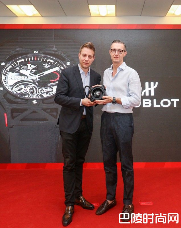 宇舶表大中华区总经理路易•比弗(Loic Biver)和 法拉利大中华区总裁兼首席执行官陶孟德(Matteo Torre)携手发布Techframe法拉利70周年陀飞轮计时腕表