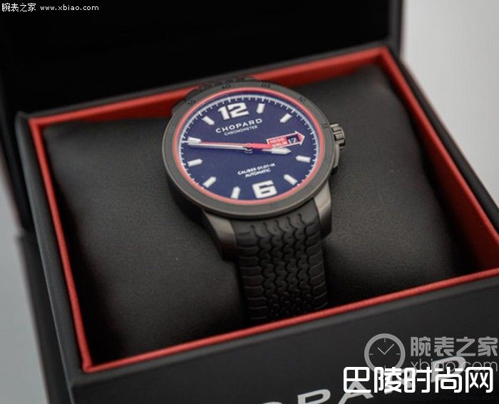 表盘3点钟位置装饰“Rossa Corsa”红色箭头图案,硕大的数字让人联想到1950年代的仪表盘。搭配黑色橡胶表带,表带上装饰经典邓禄普轮胎胎面图案。Mille Miglia GTS自动速度黑色腕表传承萧邦经典赛车精神,限量发行1,00枚。