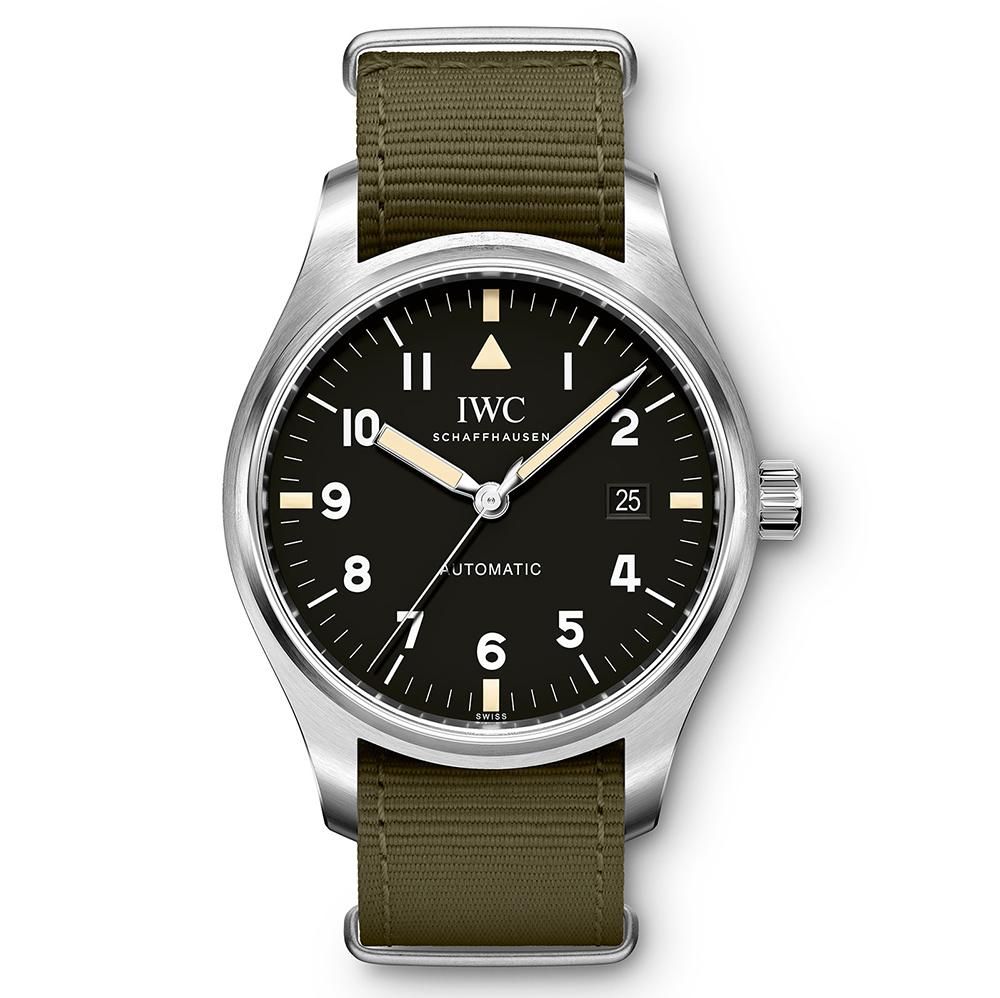 和原型表不一样的地方也不少:3点位增加了日历窗口、12点位的“IWC”标志、40mm的表径,6点上方还有AUTOMATIC字样……