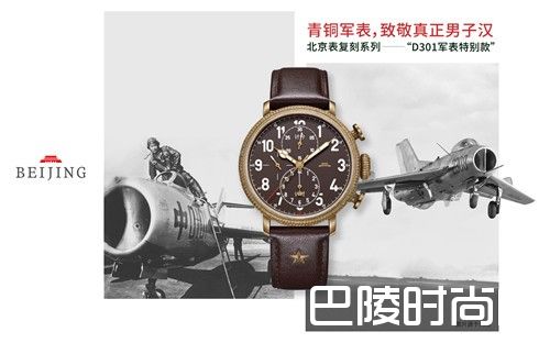 对于在严格的时间限制内执行任务的空军而言,腕表是其重要的装备之一。由于飞行环境的限制,对飞行腕表的要求更高:坚实牢固的结构,走时精准的机心,简洁的佩戴方式,以及记录瞬间分秒。复古计时表有它自己独特的韵味,不仅仅拥有古典计时的韵味,还有机械计时的乐趣。复刻系列D301军表特别款“青铜器”腕表,盘面刻度多且精密,搭载瑞士多功能机械机心,棕色的喷细砂表盘上,分布着分钟计时盘、时钟计时盘以及恒动的小秒盘,而表盘上“北京红”飞机造型的大秒针,静止在12点的位置,只有在启动计时功能时方才走动。可通过表冠一侧计时按钮的操作,完成12小时的计时过程,记录腕间的珍贵时光。