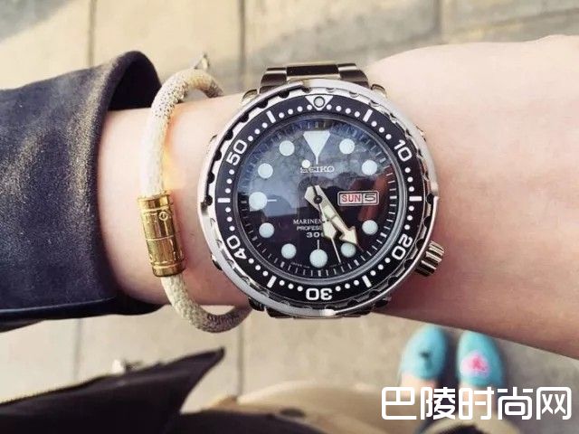 诞生于70年代精工罐头也被称为tuna can、鲔鱼,表壳外有一层护钢,4点位表冠,整体看上去就像一个圆形的罐头,重装且坚固耐用,属于精工Prospex系列。罐头分水罐和陆罐,水罐自是代表潜水系列;陆罐则是一款户外表,含简易方位计算表圈,比水罐便宜。47.7×14.7mm比例的罐头看似厚重,但《盲探》里的郑秀文戴出了不一样的味道,男表女戴并非不可,成功把罐头的营销推向了高潮。造型独特、性价比高、耐操、男女均可,这就是罐头吸引人的特点。