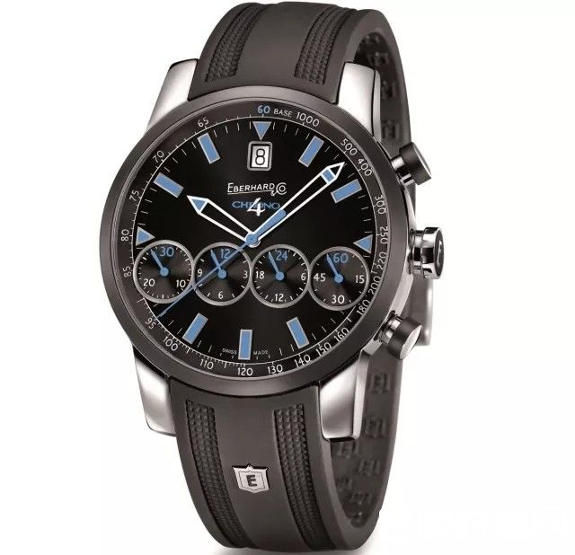 这款CHRONO 4四驱系列的依百克计时码表,表径43mm,厚15mm,不锈钢表壳。黑色表盘搭配蓝色的刻度和指针,更具运动风。表盘上还配备前所未有的并列4计时盘,颠覆了以往的读时感受。