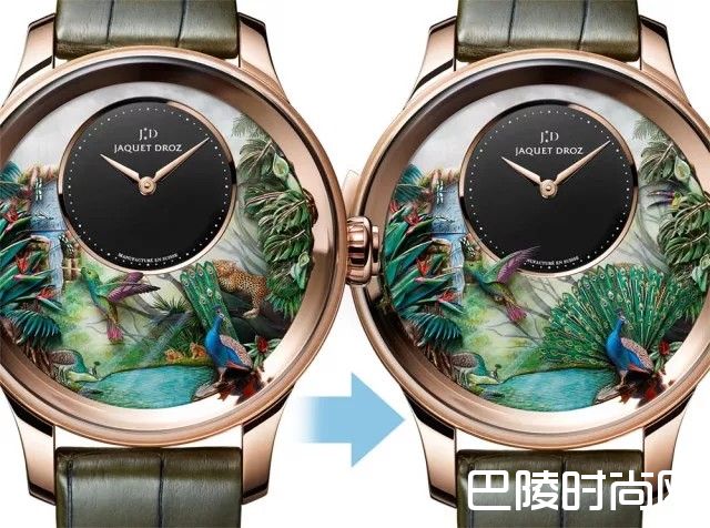 雅克德罗(Jaquet Droz)继2012年推出卓越非凡的自动玩偶腕表后,再次呈献自热带景观汲取灵感的全新杰作。以动态雀鸟及其它动物颂赞自然之美,令人叹为观止,再次突破想象力的边界。