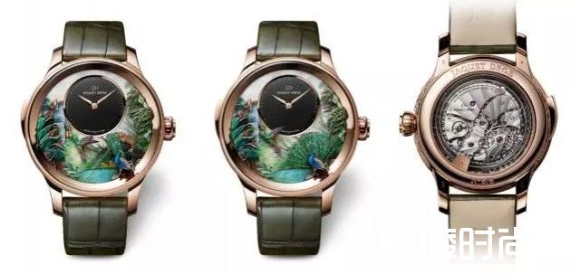 表盘中央,品牌艺术大师手工雕刻和镌刻的一只蜂鸟向一丛亮橙色的鹤望兰飞去。蜂鸟翅膀每秒钟可扇动40次,十二点钟时蜂鸟更可振翅长达7秒,共280次,这在制表史上实属首见,为活动场景赋予令人惊叹的逼真感,为如今最具震撼力的自动玩偶装置之一。
