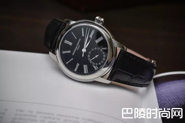 康斯登这款优雅的正装表极具复古风格。6点钟位置采用小表盘式日期显示,白色的细长罗马数字刻度,经典大三针,所有这些元素都集中在亮黑色表盘上。直径42mm,精钢表壳,搭载FC 710自动上链机械机芯。公价2290欧元,约合人民币17700元。