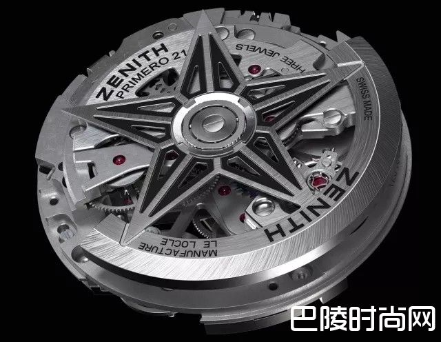 搭载El Primero星速9004型自动上链机械机芯,动力储备至少50小时,摆铊饰以“日内瓦波纹”图案。这是全新1/100秒计时码表机芯,腕表配1个擒纵(36000振次/小时 -5赫兹);计时码表配1个擒纵(360000振次/小时 -50赫兹)