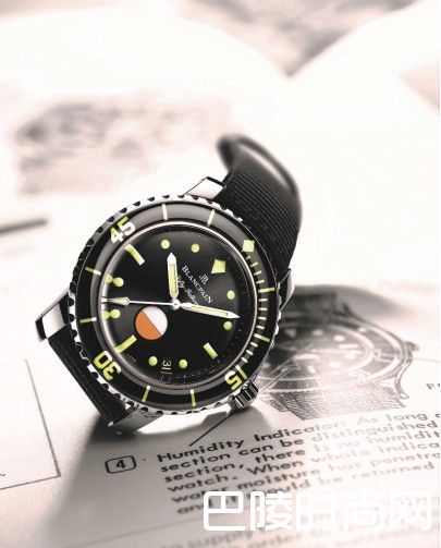 作为现代潜水腕表的开创者,1953年发布的首款五十噚腕表由时任宝珀首席执行官(同时亦是自由水肺潜水的领航人)的让-雅克·费希特(Jean-Jacques Fiechter)先生设计。在二十世纪五十年代,法国海军潜水突击队员均佩戴此腕表。让-雅克·费希特深知,一枚可靠的腕表对保障潜水员的生命安全至关重要,因此,他决定为腕表增加湿度指示计。一旦出现水汽渗入,表盘6点钟位置的双色显示盘中的白色部分将变成红色,以起到警示作用。这款腕表被称作五十噚MIL-SPEC 1,曾于1957-1958年间被美国海军选用。