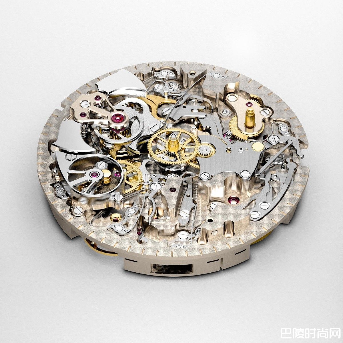 在机芯中,整体由发条盒、轮系及调节构件组成,这个部分拥有60个小时的动力储备功能,而且经瑞士官方天文台精密时计认证(COSC)。对此,L.U.C Full Strike三问表完全符合萧邦联合总裁卡尔-弗雷德理克·舍费尔(Karl-Friedrich Scheufele)的严格要求,也是L.U.C.系列腕表所恪守、获精密时计认证的高级制表原则。另一方面,本腕表三问功能的打簧报时机制跟传统做法大相迳庭,它是设置在表盘这一面,所以整体机制可从表面上一览无遗。