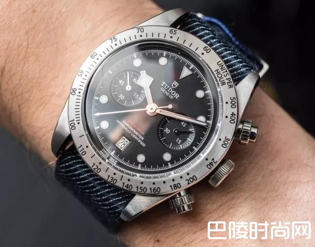 腕表保留了雪花针这一著名美学特色,哑光黑母盘与子盘之间层次感分明,不影响读时,日历窗设于6点钟位置,按钮设计灵感则源于第一代帝舵计时腕表。