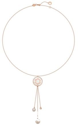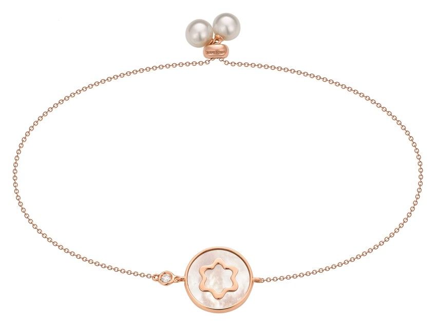 万宝龙4810 Signet系列女士高级珠宝长项链的吊坠环绕以柔美玫瑰金,中心镶嵌珍珠贝母六角白星图案,无论搭配晚礼服还是休闲装扮,轻盈摇曳中散发迷人风情。珍珠与圆润切割钻石组成的可拆卸吊坠装饰于六角白星挂坠下方,目眩神迷间为玉颈更添闪耀华光。配套手链以纤细玫瑰金链守护六角白星,两颗珍珠点缀的独特滑动闭合装置令佩戴者可随心调节链长,珍珠贝母质地的六角白星无时不刻闪烁着流动变幻的虹彩光晕。