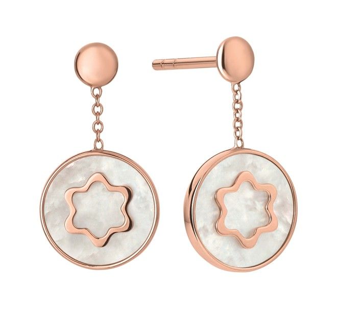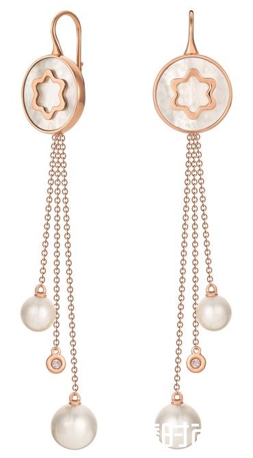 万宝龙4810 Signet系列女士高级珠宝耳环以勃朗峰的雪岭冠冕挂坠装饰,闪烁华光的钻石与珍珠吊坠可随心叠置于挂坠下方,精美巧思,意趣盎然。另一款耳环则搭配圆形六角白星吊坠,简约典雅,精致动人。
