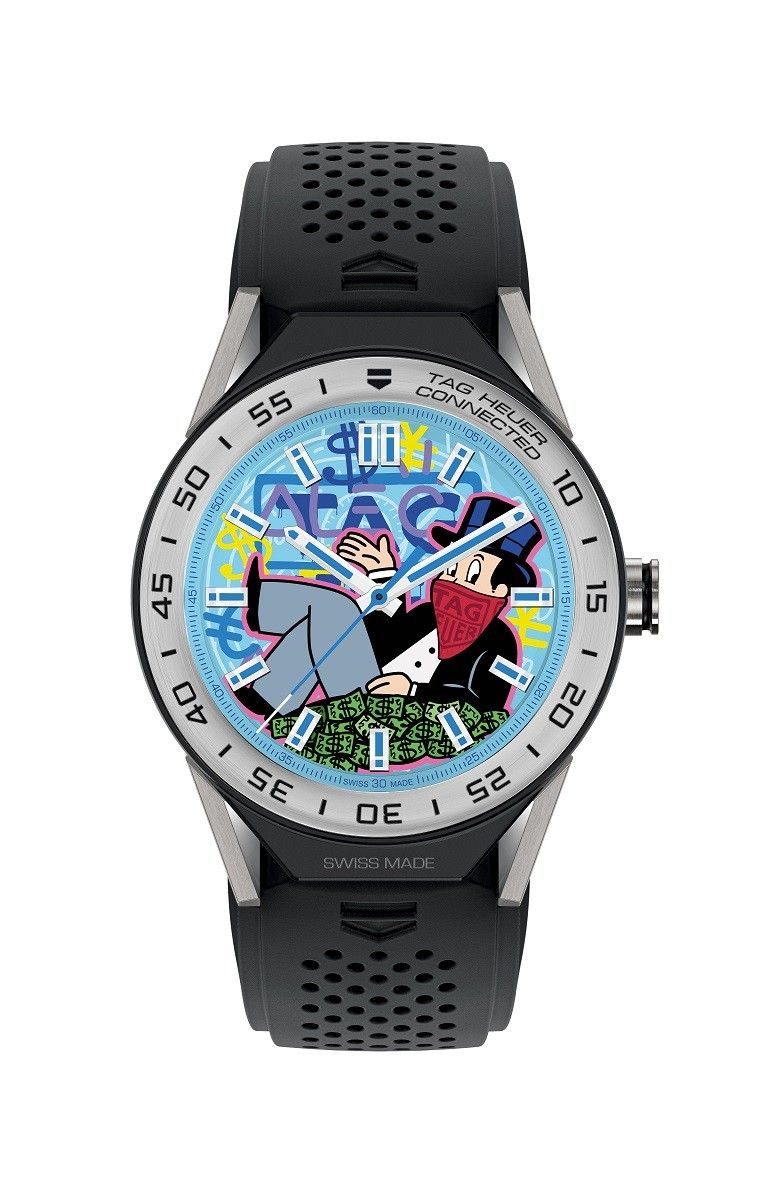 TAG Heuer Connected Modular 45智能腕表Alec Monopoly限量款,由AlecMonopoly创作设计表盘TAG Heuer Connected Modular 45 智能腕表Alec Monopoly限量款是以纯正的瑞士制表传统设计制造,由泰格豪雅和英特尔(Intel)合作研发,并特别搭载Google(谷歌)的Android Wear 2.0系统,为用户提供更便捷的智能体验。表款直径45毫米,独特的模块化理念使用户可随心定制腕表的整个外观,包括表耳、表带和表扣。模块化理念更延伸至智能腕表的表盘界面,可自由切换30款不同盘面。