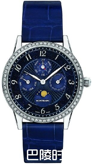 高雅的万宝龙宝曦系列万年历珠宝腕表(限量88枚)配有同色系深蓝色鳄鱼皮表带,已通过“万宝龙实验室500小时质量测试”认证,保证腕表品质与性能表现,彰显高级制表技艺。