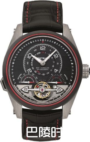 万宝龙时光行者系列外置框架陀飞轮分钟计时码表(限量款100枚)采用粒纹表盘设计,完美融合美感、功能和易读性,以12时位置的偏心黑色表盘显示时间,搭配红色和白色阿拉伯数字刻度,外覆夜光SuperLumiNova®*涂层,夜间也能轻松读时;表盘下半部分可窥见专利外置框架陀飞轮装置,设有两个半圆计时盘带双指针:秒钟计时盘位于8时位置,分钟计时盘位于4时位置。表盘上半部分饰有黑色水平条纹,下半部分采用垂直哑光效果,突出专利外置框架陀飞轮装置。表盘还饰有穹形蓝宝石水晶,两面均经过防反光处理,并带有垂直侧翼,具备卓越的可读性和防刮擦性,性能超群。