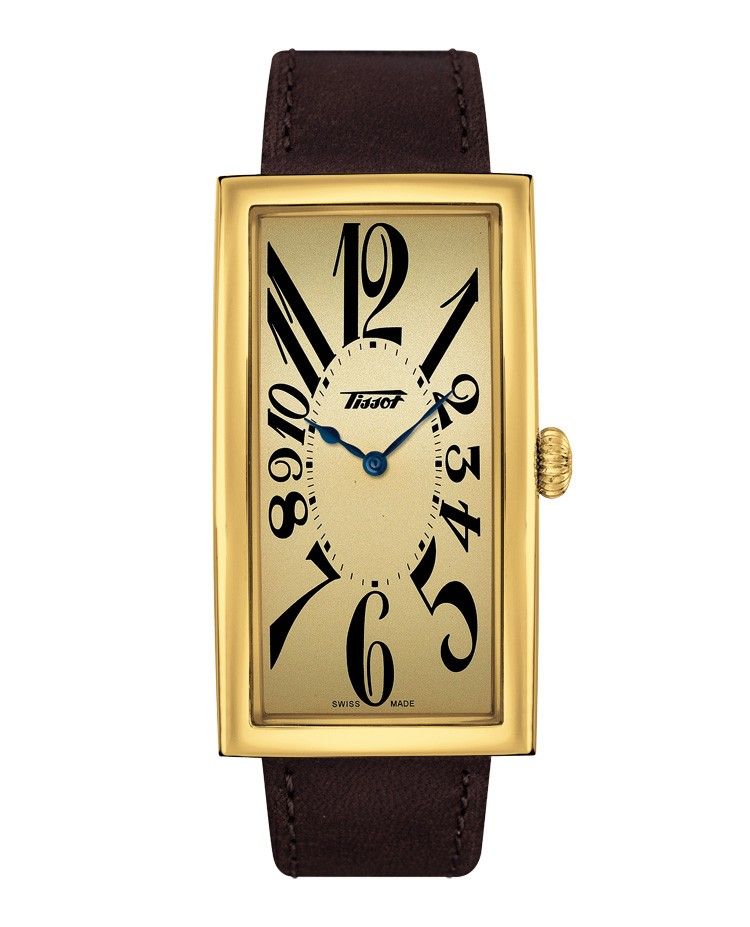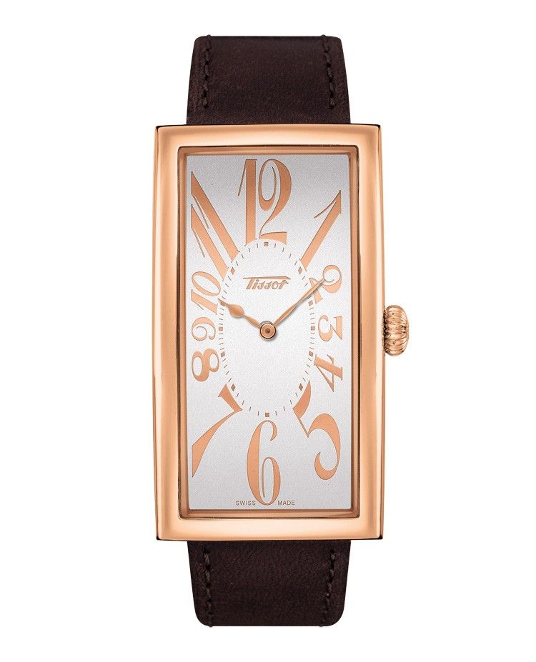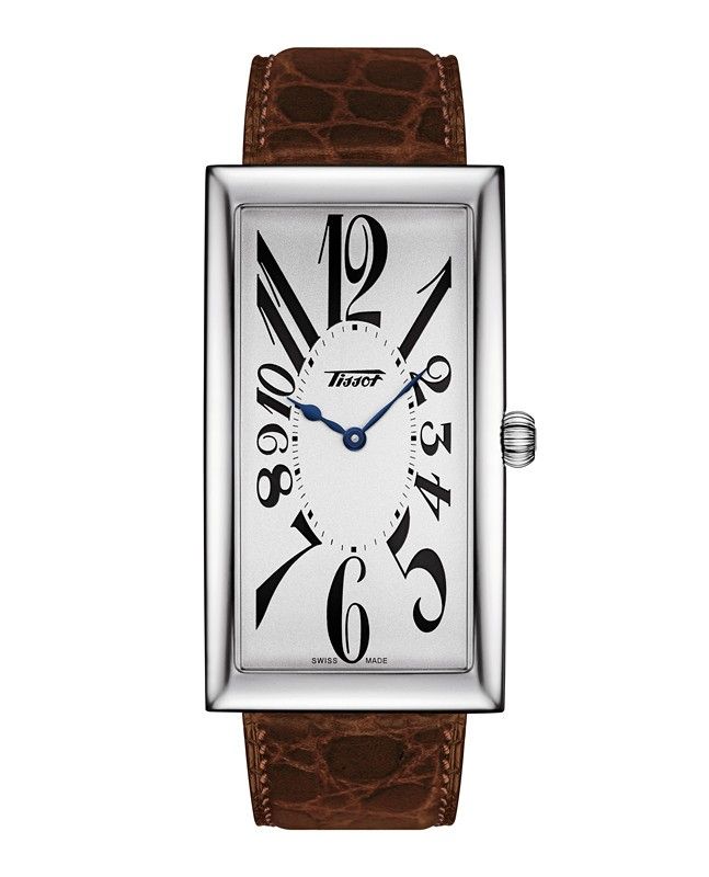 该腕表灵感源于1916年远售沙俄的原型腕表。整体呈现出浓重的新艺术派风格,帖服手腕弧度而设计的弧形表壳颇为独特,长方形的表壳搭配设计独特的线条和大小不一的数字时标,巧妙融于纤薄的矩形表盘中,增添了许多摩登气息。指针沿袭了原版的造型,表冠的精细纹理则代表着跨越百年而共通的优雅,而这一切都以复古的天梭标志为中心点缀,展现出不凡的美感。值得一提的是,该系列腕表拥有众多款式,不仅有深邃的黑色表带,更有光滑的复古深棕色皮质表带,其触感细腻柔滑,为腕间增添一抹亮色。表壳有金色、银色以及玫瑰金作为选择搭配,复古风情肆意挥洒。