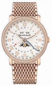 宝珀Villeret经典系列两地时全历月相腕表红金款和精钢款,可选择短吻鳄鱼皮表带或金属表链