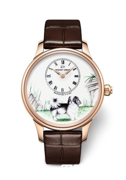 雅克德罗于农历狗年之际推出两款灵犬时分小针盘腕表(Petite Heure Minute Dog),呈献优雅灵动、栩栩如生的北京狗,向品牌与中国的数百年悠久渊源致敬。北京狗是中国的古老犬种,自秦始皇时代就被养在宫廷之中,一直以来都是皇室贵族独享的爱犬。它活泼可爱又高贵的形象,传说深受慈禧太厚的喜爱。而因它体型娇小,甚至可以外出藏于袖中,故又称“袖犬”。