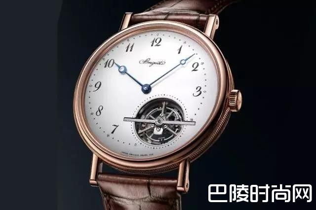 直径42mm,玫瑰金表壳/时间指示,陀飞轮装置/581超薄自动上链机芯,动力储存80小时/白色大明火珐琅面盘/阿拉伯数字时圈,针尖镂空宝玑蓝钢指针/蓝宝石水晶镜面,透明底盖/皮表带/防水30米