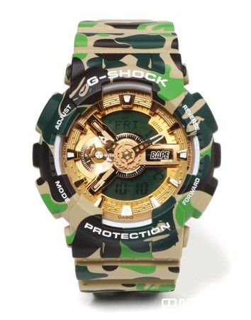 但是这次JJ也大秀的裱,可就更难抢了,是A BATHING APE®与G-SHOCK的联名表款GA-110APE。两个大牌粉丝众多,据说还没开卖就已经在拍卖网站炒到了4倍高价。
