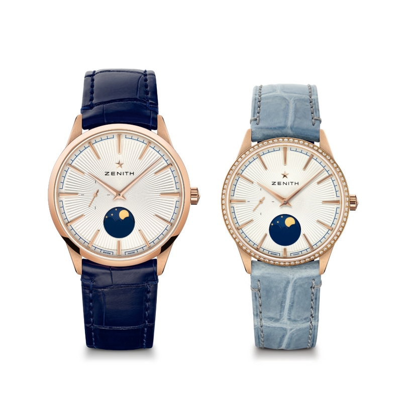 说到七夕就会联想到牛郎与织女的故事,而ZENITH 真力时ELITE 系列的月相对表便是以月光银河做为设计灵感,为这系列表款注入更浪漫的意涵。对表分别为40.5 毫米的男款和36 毫米且镶上美钻的女款,采用18K 玫瑰金或是精钢制成,锥形时标则是经过刻面和抛光处理,突显出外观的优雅质感,并且在九点钟位置设有小秒盘、六点钟位置缀有经典月相,既独特又有辨识度。