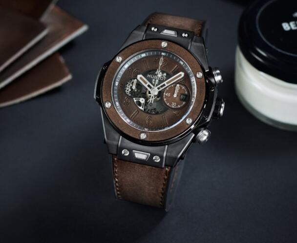 血统源于瑞士的Hublot 宇舶表再度与Berluti合作,让UNICO机芯与Venezia皮革融合,推出Big Bang Unico冰棕腕表,是一款极其精美的手工皮革表款,这种冰棕色皮革是Berluti心血结晶,成功运用在Big Bang Unico表盘中,黄铜底座把皮革密封在两块蓝宝石镜面之间,表圈也是采用厚度只有一毫米的皮革材质,冰棕色皮革表带搭配西装绝对再适合不过!