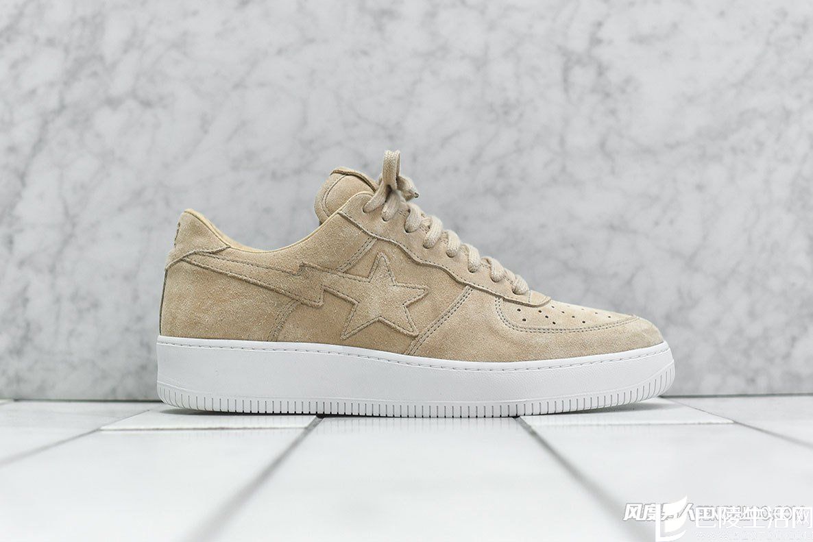 在 KITH 于纽约举办的首场 Runway Show 发布会「KITHLAND」中曝光后,设计师 Ronnie Fieg 与日本街头品牌 A Bathing Ape 的全新联名企划亦正式被揭开面纱。以「Fiegsta」为名,双方选择经典的 Bapesta 作为蓝本,分别采用高档白色皮革和沙色麂皮于葡萄牙手工制作,并将「Bapesta」与「Fiegsta」的 Logo 点缀于左右鞋舌和后跟。