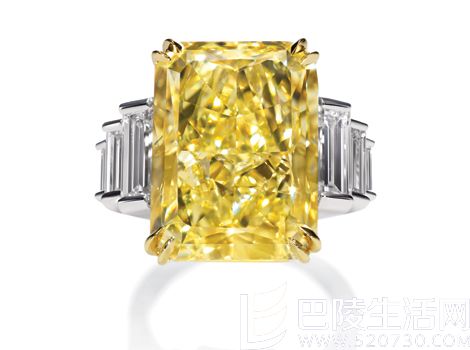 海瑞温斯特雷德恩切工金黄彩钻钻戒 材质: 彩色宝石-鲜黄彩钻+铂金 产地:美国 上市时间:2010 年 市场参考价格:112087500.00 元 / 枚