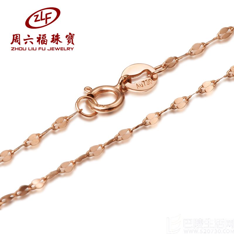 ZLF/周六福珠宝18K项链18K黄金白金玫瑰金彩金au750女款 出售价格:388 原价格:489 月销量:4 运费:25 所在地:广东 深圳 库存数量:33 收藏数:245 货号: kjxl888|品牌: ZLF/周六福|售后服务: 专柜联保|镶嵌材质: 未镶嵌素金|规格: 18K 白金色 18K 黄金色 18K 玫瑰金|图案/形状: 其他|重量: 定制价格 长40cm|贵金属成色: 18K金|款式: 项链|用途: 自用|增值服务: 现货72小时内发货|鉴定证书: NGTC证书|适用对象: 女性|价格类型: 定价 是否商城:是 是否支持七天退换货:否 是否有正品保障:是 是否支持信用卡付款:是周六福黄金项链专区