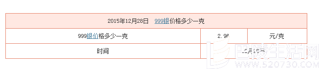 999银手镯现在多少钱一克 999银首饰里面的足银,可以叫纯银。含量就是金属符号后面那些数字,999就是99.9%(3号白银)。足银----纯度千分数前冠"银"或"S",如"银800"或"S800","S 990"或"足银"。白银价格也是根据银及其合金程度的不同而有所变化。