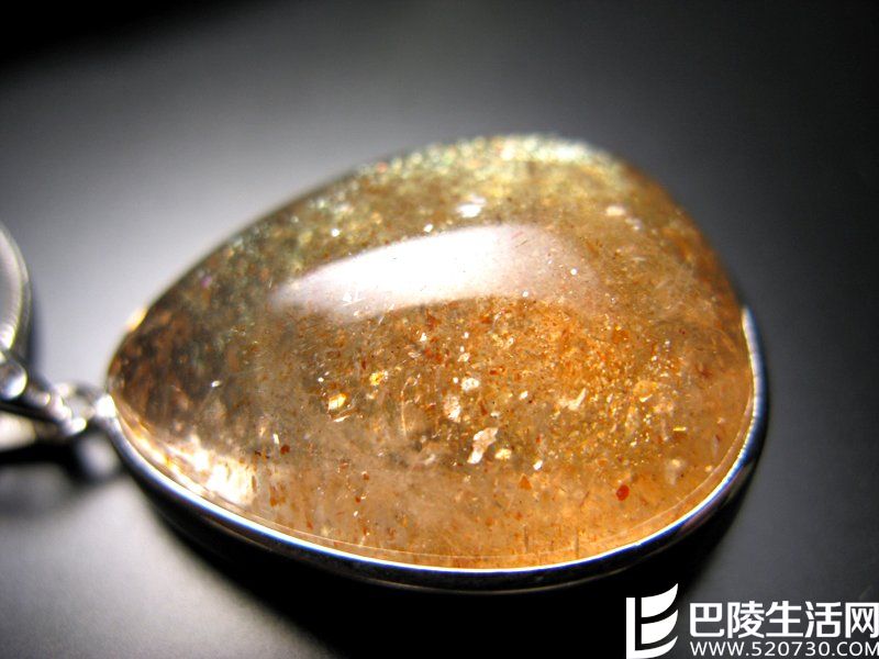 日光石和月光石一样,有着非常漂亮的日光效应,这种效应其实是由它的内包物引起的。这不禁也让我想起了相似的蛋白石。在日光石的石体内有着非常多的类似于铜片的小亮片,这是由于这些小亮片对于阳光的反射,才让日光石拥有了这种迷人的日光。