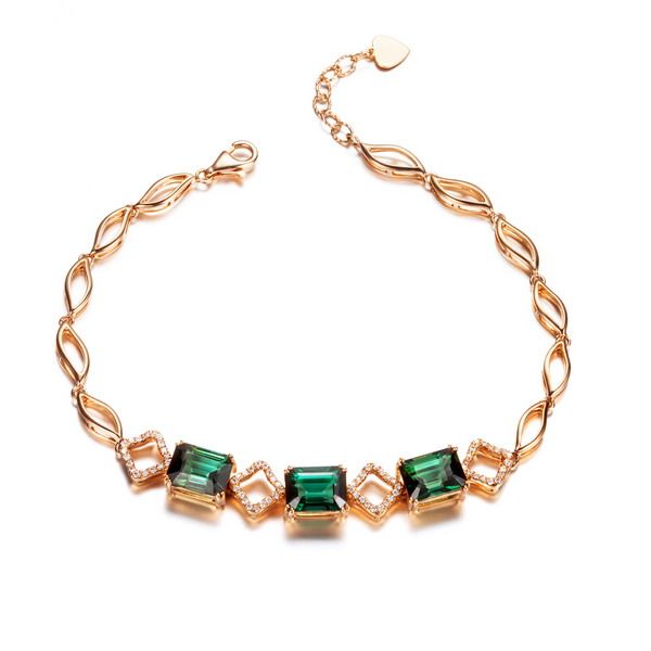 点击图片进入【情与恋】 玫瑰金5.55克拉巴黎绿碧玺女士手链