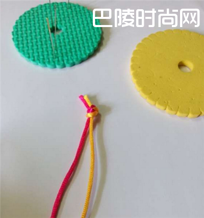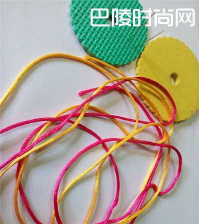 主要材料:五号线两种颜色各一条,剪刀,四枚针,两个棉埑。