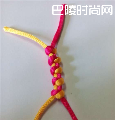 7、以上是双色缠绕一直编的蛇结手链编法,还有一种两种颜色分开编在一个手链上的,如图,大家可以学习下,也是非常简单的!