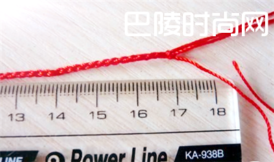 因此,整个绳编到17cm,打个单扣暂时固定。