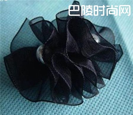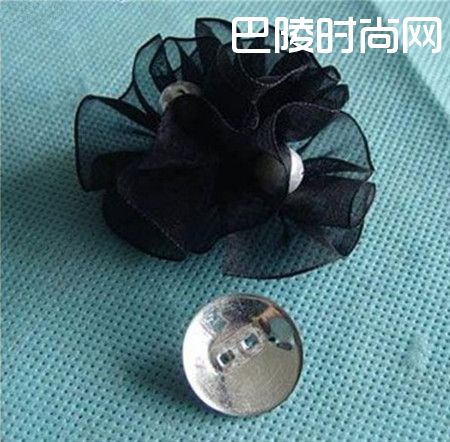 第六步:取裁下的宽丝带,2颗珍珠胸花托,做一朵小胸花。