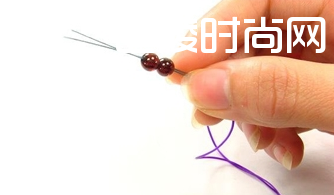 4、完成啦!如果绳子软,珠子孔小,还可以用一根铜线来帮忙穿,会更方便。