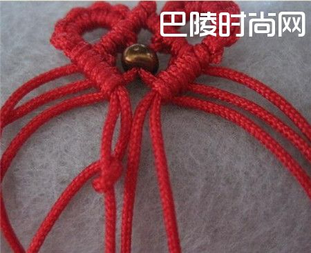 第四步:把另一个心形和手链部份都编制好后,确定好长度,编制平结收尾。收尾多出来的玉线,可以多留下一些,穿入小珠子,手链会更漂亮哟!