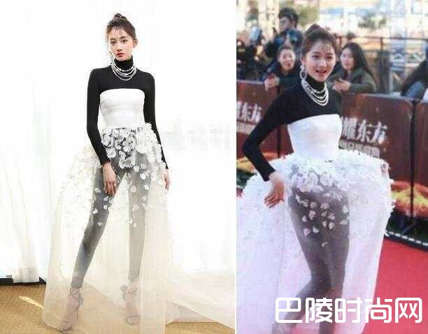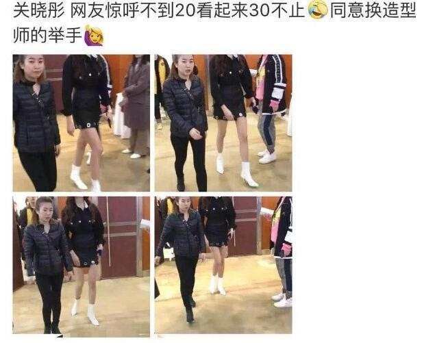 但是看到关晓彤的装扮和造型,看着也是怪渗人的。黑色的短裙本应该是御姐风,但搭配上一双不知什么年代的白高跟看起来真是不舒服。再加上卷发的搭配,感觉就像是已经三四十岁的中年妇女了。