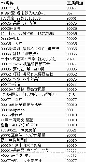 2018虎牙美女游戏主播人气排名: