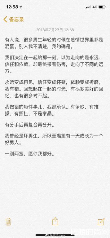 经纪公司27日一早发出的声明中强调,关于网路上盛传有关家暴等内容,全是不实谣言。不久后,许凯本人也透过微博发文,针对过往感情做出回应,有人说,很多男生年轻的时候在感情世界里都是混蛋。别人我不清楚,我的确是。
