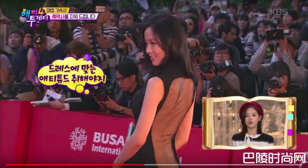 姜汉娜29日出演《Happy Together 4》,自掀2013年参加釜山国际电影节的黑历史,当时她穿着一袭贴身黑色礼服,正面看十分优雅,怎料一转背面,整片美背放送、开低衩露出半颗屁股,就连股沟都轻易见到,破格的性感穿着立刻攻占各大版面,造成当时网路搜索第一名,轰动全韩。