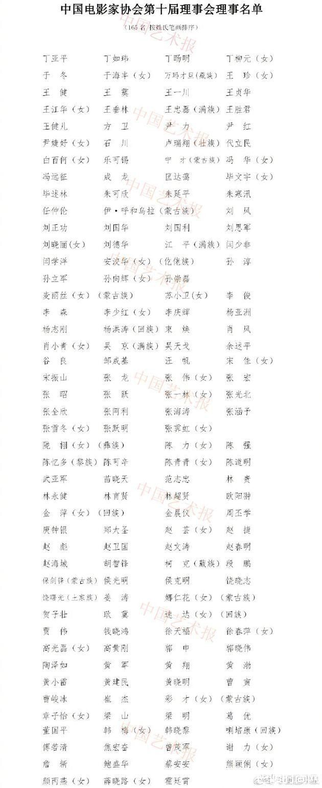 第十届理事名单也随之公开,包括爆出婚变的白百何、传出逃税被调查的冯小刚、卷入炒股案的黄晓明名列理事,引发部分争议。另外,香港的刘德华、成龙、导演陈可辛,以及黄渤、张涵予等人都是理事之一。