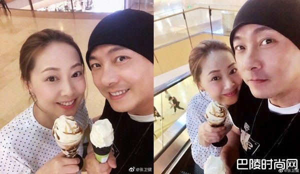 张卫健晒出和老婆合照,两人手持甜筒,站在一起入镜自拍,老婆更靠在自己手臂上相当亲密。他配图PO文:冰淇淋不是小朋友的专利,老人家也可以啃,祝大家儿童节快乐。