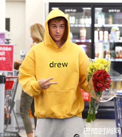 小贾斯汀庆祝订婚纪念日,买花送给老婆海莉。